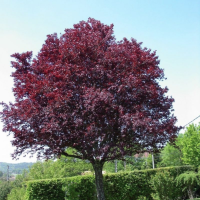 Слива Нигра (Prunus cerasifera Nigra) – это листопадный древовидный кустарник или небольшое дерево с округлой или конусовидной кроной и живописно свисающими ветвями.