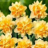 Нарцисс Пич Коллер, относящийся к группе махровых, невероятно эффектен и уникален! Вся его «необычность» кроется в строении соцветия. Узкие и изящные многояруцсные лепестки кремового цвета нежно обрамляют небольшие «корзиночки» из ярких «кусочков» персиковой коронки вперемешку со сливочными льдинками. Выглядит Пич Коллер в период цветения неописуемо красиво как на клумбе, так и в срезке!