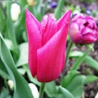 Тюльпан лилиецветный Лили Чик отличается компактными размерами. Высота прочных цветоносов обычно не превышает 50 сантиметров. Период цветения наступает с начала мая, образуя на прочном цветоносе высокий плотный бокал. Окраска бутона примечательная: насыщенно-малиновый лепесток по краям украшен белыми штрихами. Размер цветка этого прекрасного растения достигает 10-12 сантиметров.