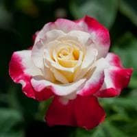 Думаете, получится? Вряд ли, ведь перед вами удивительная чайно-гибридная роза Дабл Делайт! Ее главная изюминка – разнообразие и непредсказуемость цвета. Крупные махровые лепестки этой роскошной жительницы летнего сада больше удивляют не кремово-белым окрасом, а своей темно-красной каймой. Если в начале цветения она присутствует только на внешних лепестках, то потом, по мере раскрывания бутона, «подымается» все выше и выше, украшая ярко-малиновой каймой и верхние лепестки. Появляется настолько потрясающий контраст слоев, что словами передать невозможно.
